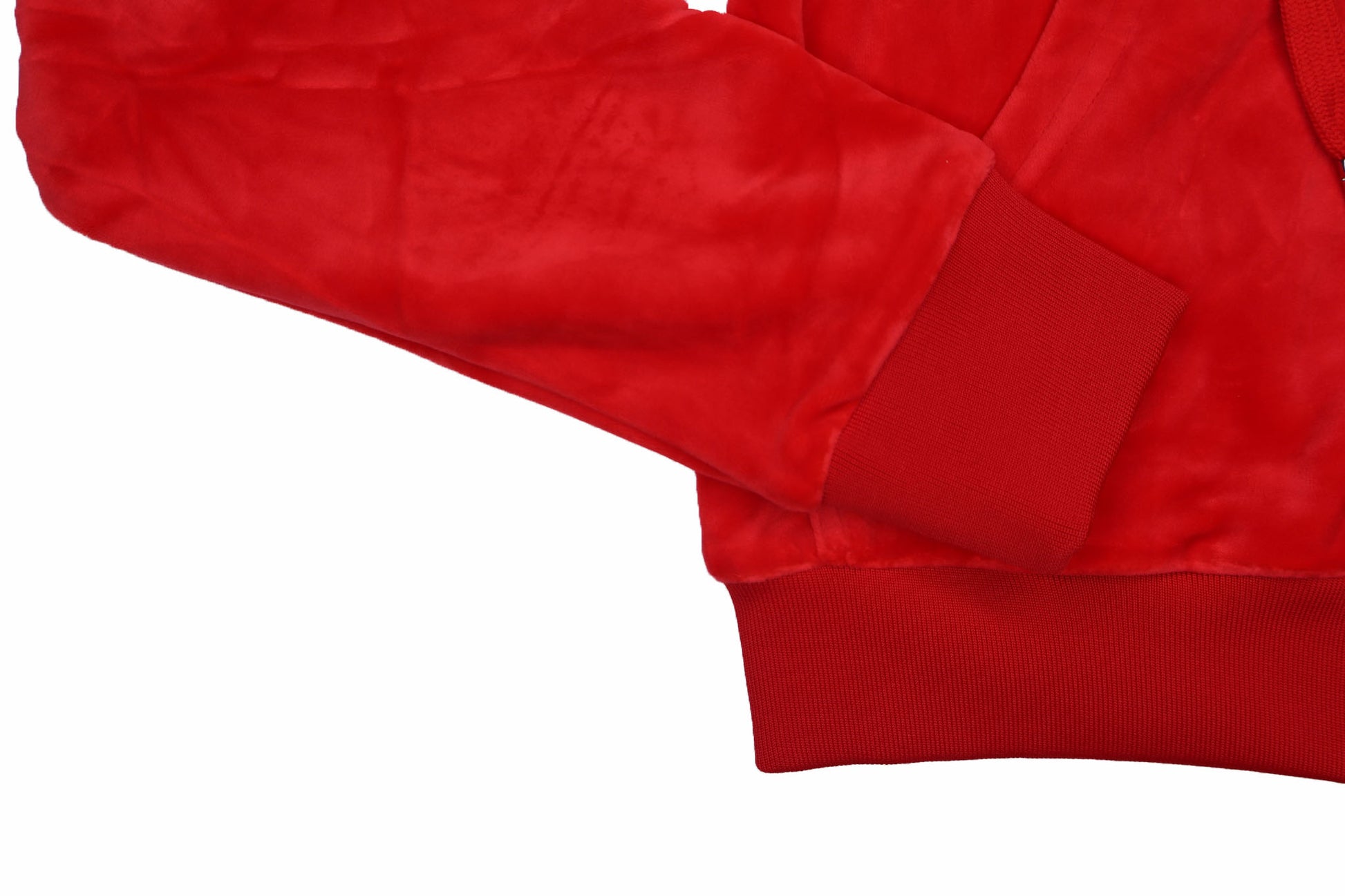 This jacket is crafted from high-quality velour, a plush fabric with a soft, velvety texture and luxurious feel. This jacket features a 2000's silhouette that flatters all body types. The natural stretch of the velour fabric ensures a comfortable fit that moves with you. This makes the jacket perfect for all-day wear, whether you’re running errands, heading to the office, or going out for a night on the town.